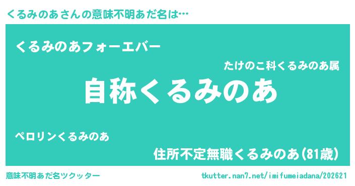 | 欧米人風あだ名 | 『くるみのあ・ステッグマイヤー』 |