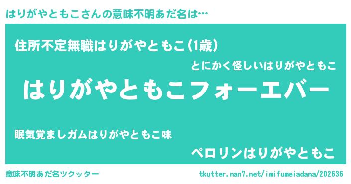 | 肩書あだ名 | 『はりがやともこ大統領』 |