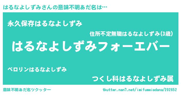 | ポケモン風あだ名 | 『ハルナダネ』『ゼニハル』 |