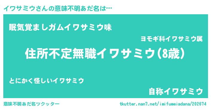 | ヒーロー風カッコイイあだ名 | 『仮面イワダー』『友情の使者イワサミウ』 |