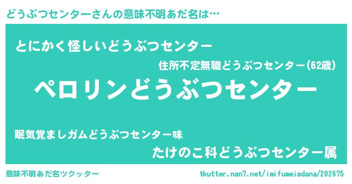 | ヒーロー風カッコイイあだ名 | 『スーパードウブツセンター』 |