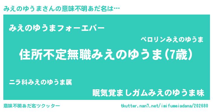 | 肩書あだ名 | 『みえのゆうま教官』『みえのゆうま教授』 |