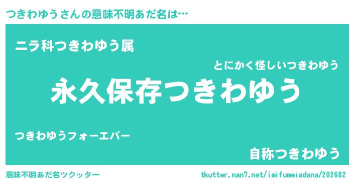 | 男性向けラノベタイトル風あだ名 | 『つきわゆうという概念が存在しない退屈な世界 』 |