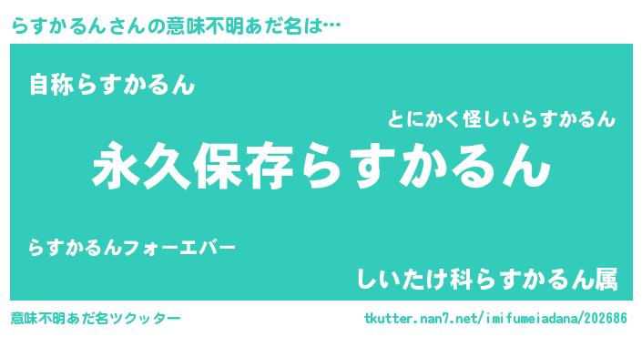 | 男性向けラノベタイトル風あだ名 | 『らすかるんという概念が存在しない退屈な世界 』 |