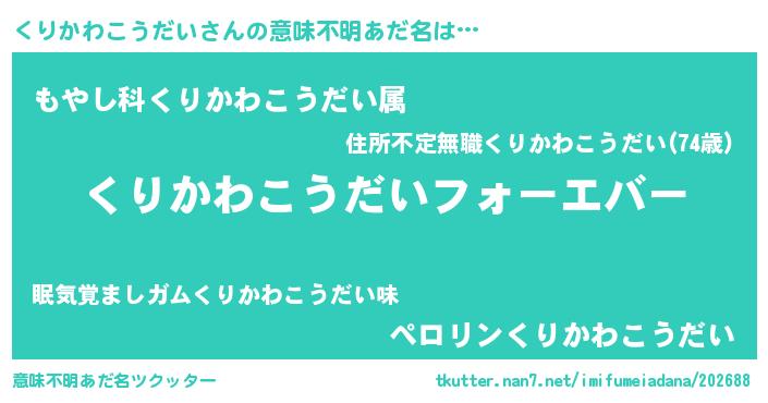 | 欧米人風あだ名 | 『くりかわこうだいクリステル』 |