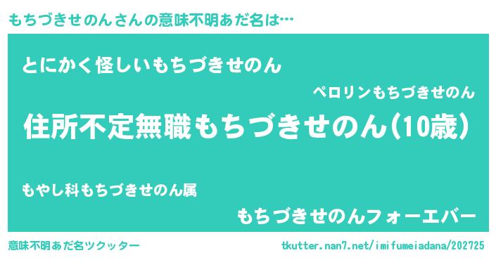 | 男性向けラノベタイトル風あだ名 | 『この素晴らしい世界にもちづきせのんを!』 |