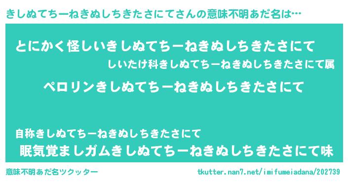 | 肩書あだ名 | 『きしぬてちーねきぬしちきたさにて店長』 |