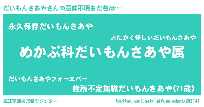 | 男性向けラノベタイトル風あだ名 | 『ダイモンサアヤスレイヤー』 |
