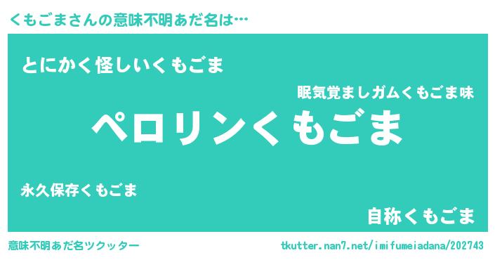 | 欧米人風あだ名 | 『マイケルくもごま』『ウサインくもごま』 |