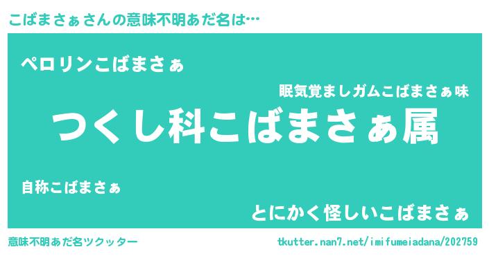 | 男性向けラノベタイトル風あだ名 | 『こばまさぁ~年齢イコール彼女いない歴の魔法使い~』 |