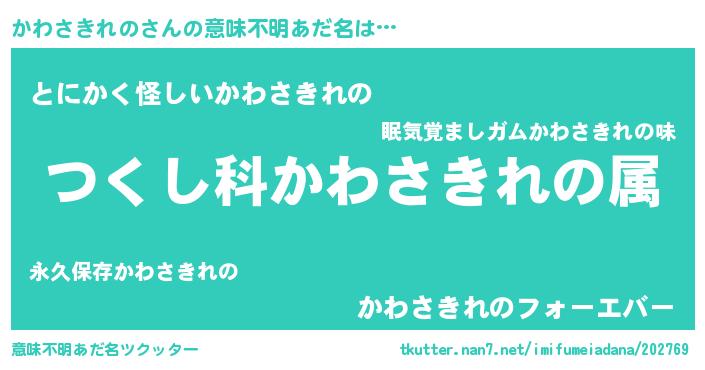 | ポケモン風あだ名 | 『カワキング』『ヒカワサキレノ』 |