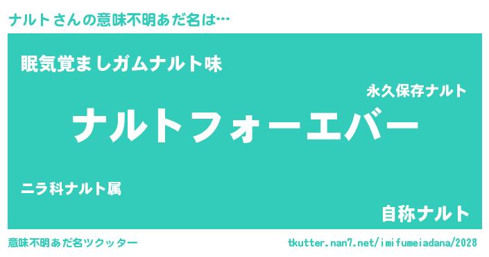 | 女子向けラノベタイトル風あだ名 | 『ナルトの雑貨屋さん』 |