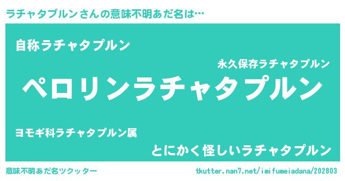| ヒーロー風カッコイイあだ名 | 『スーパーラチャタプルン』 |