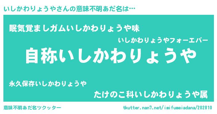 | 欧米人風あだ名 | 『いしかわりょうや・ステッグマイヤー』 |