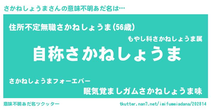 | 肩書あだ名 | 『さかねしょうま総統』 |
