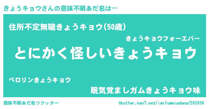 | ポケモン風あだ名 | 『ヒキョウキョウ』『キーョイ』 |