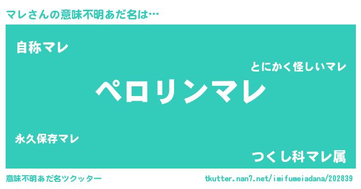 | 男性向けラノベタイトル風あだ名 | 『うちのマレが世界を掌握している!』 |