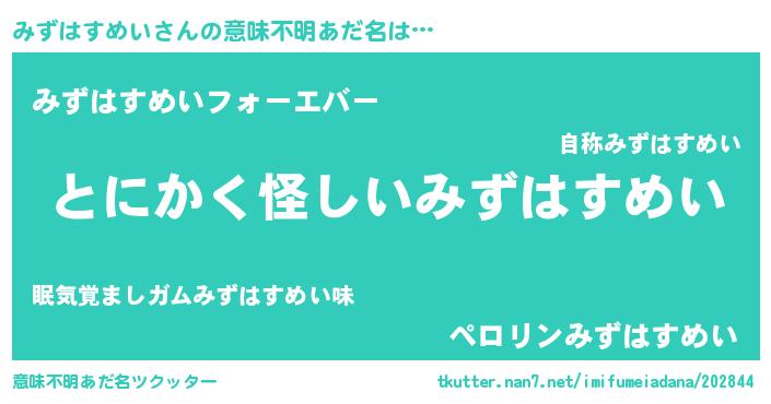 | 欧米人風あだ名 | 『みずはすめい・ステッグマイヤー』 |