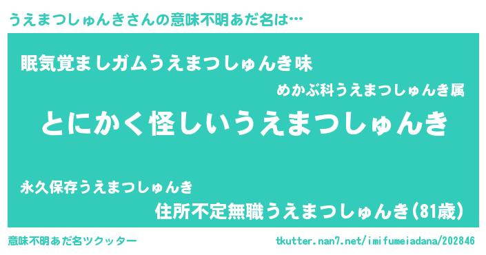 | 胡散臭い通販商品みたいなあだ名 | 『全米が絶賛したサプリメント…その名も「うえまつしゅんき」』 |