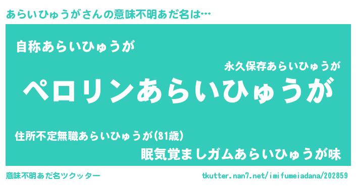 | ヒーロー風カッコイイあだ名 | 『スーパーアライヒュウガ』 |