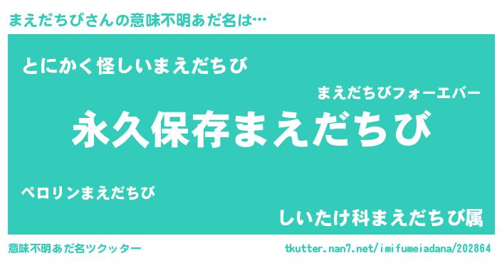 | 男性向けラノベタイトル風あだ名 | 『まえだちびという概念が存在しない退屈な世界 』 |