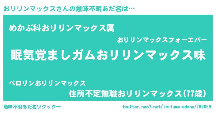 | 欧米人風あだ名 | 『アンジェラ・おリリンマックス』 |