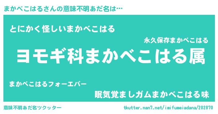 | ヘコむあだ名 | 『まかっぺ』『まかべこはる(小並感)』 |