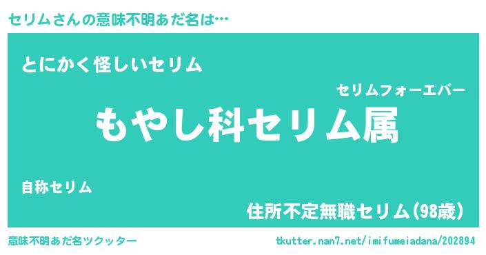 | 胡散臭い通販商品みたいなあだ名 | 『伝統あるサプリメント…その名も「セリム」』 |