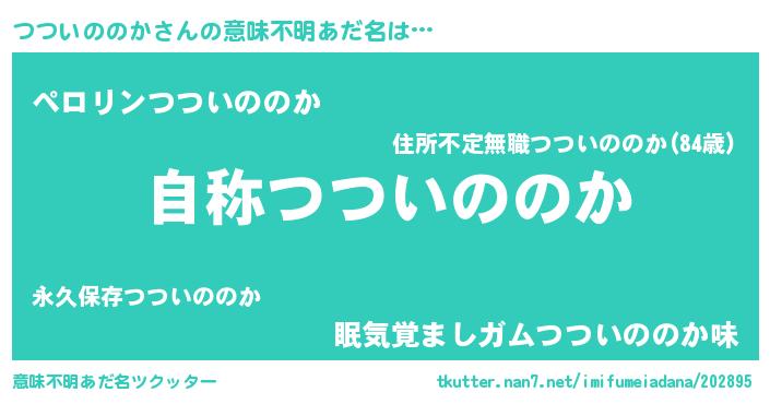 | 女子向けラノベタイトル風あだ名 | 『つついののかストレイドッグス』 |