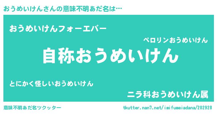 | ヒーロー風カッコイイあだ名 | 『ウルトラ戦士オウメイケン』 |