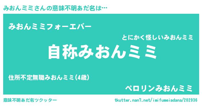 | 欧米人風あだ名 | 『みおんミミ・ステッグマイヤー』 |