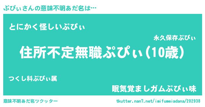 | ポケモン風あだ名 | 『プーピイ』『ヒプピィ』『ゼニプピ』 |