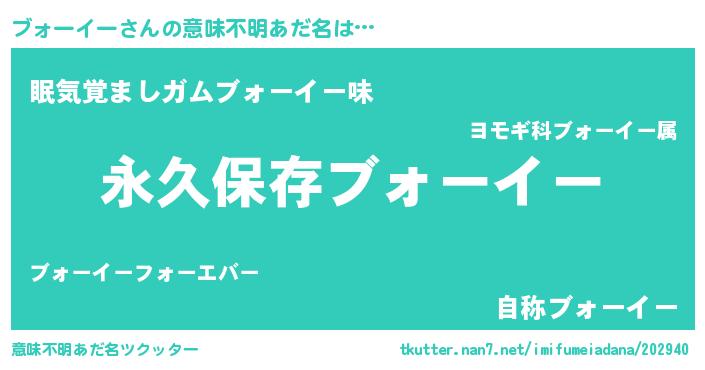 | 胡散臭い通販商品みたいなあだ名 | 『来世でも幸せになれる健康食品…その名も「ブォーイー」』 |