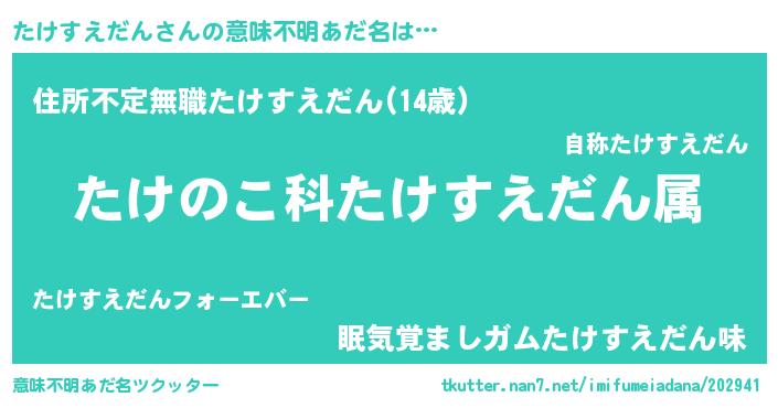 | 男性向けラノベタイトル風あだ名 | 『転生したらたけすえだんだった件』 |