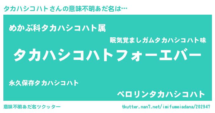 | ファンタジー風あだ名 | 『エターナルタカハシコハトー』 |
