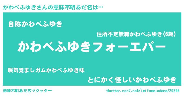 | ファンタジー風あだ名 | 『エターナルカワベフユキー』 |