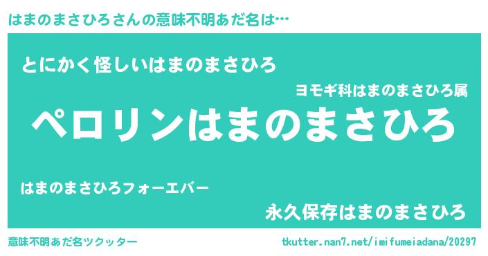| 男性向けラノベタイトル風あだ名 | 『はまのまさひろの憂鬱』 |