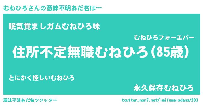 | ヒーロー風カッコイイあだ名 | 『仮面ムネダー』『慈愛の使者むねひろ』 |