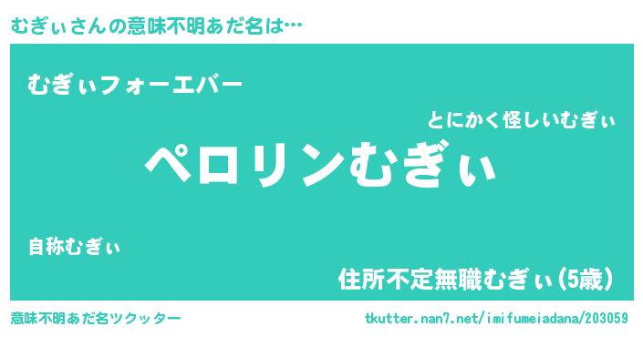 | 男性向けラノベタイトル風あだ名 | 『ムギィアートオンライン』 |
