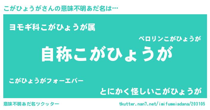 | 欧米人風あだ名 | 『ケンブリッジこがひょうが』 |