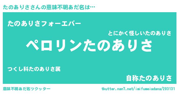 | 男性向けラノベタイトル風あだ名 | 『たのありさの憂鬱』『緋弾のタノアリサ』 |