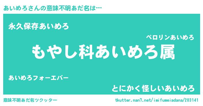 | 男性向けラノベタイトル風あだ名 | 『転生したらあいめろだった件』 |