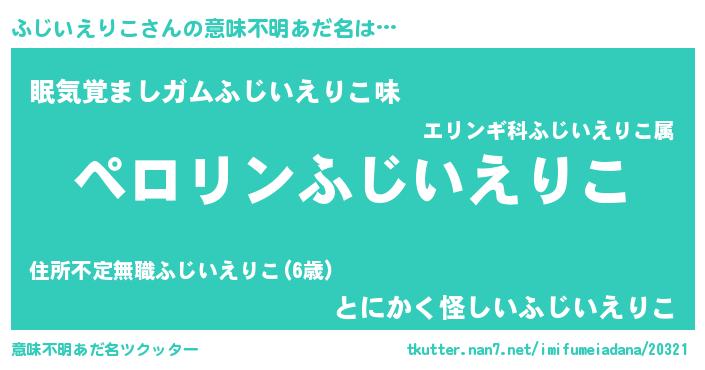 | 欧米人風あだ名 | 『マイケルふじいえりこ』 |