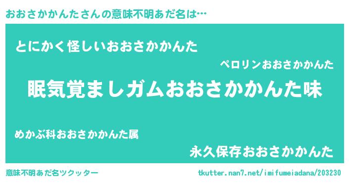 | ポケモン風あだ名 | 『オックウザ』『ヒオオサカカンタ』 |