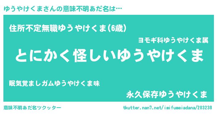 | ヘコむあだ名 | 『ゆうを』『ゆうやけくま(笑)』 |