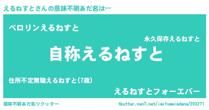 | 肩書あだ名 | 『えるねすと総統』『えるねすと社長』 |