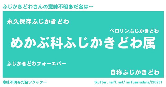 | 欧米人風あだ名 | 『トリンドルふじかきどわ』 |