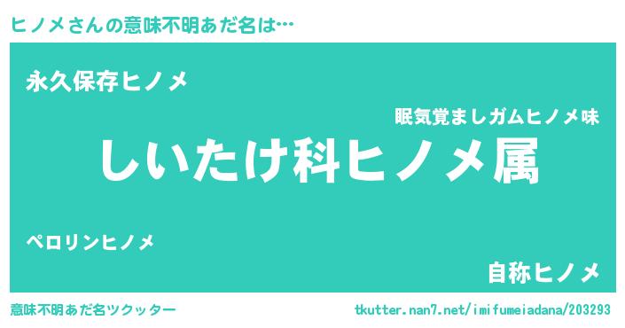 | 欧米人風あだ名 | 『アンジェラ・ヒノメ』『ダニエルヒノメ』 |