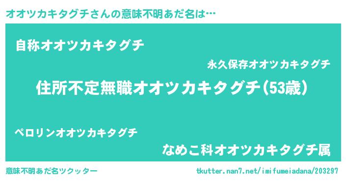 | 男性向けラノベタイトル風あだ名 | 『この素晴らしい世界にオオツカキタグチを!』 |