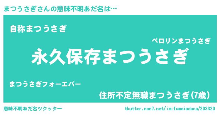 | 胡散臭い通販商品みたいなあだ名 | 『前代未聞の健康食品…その名も「まつうさぎ」』 |